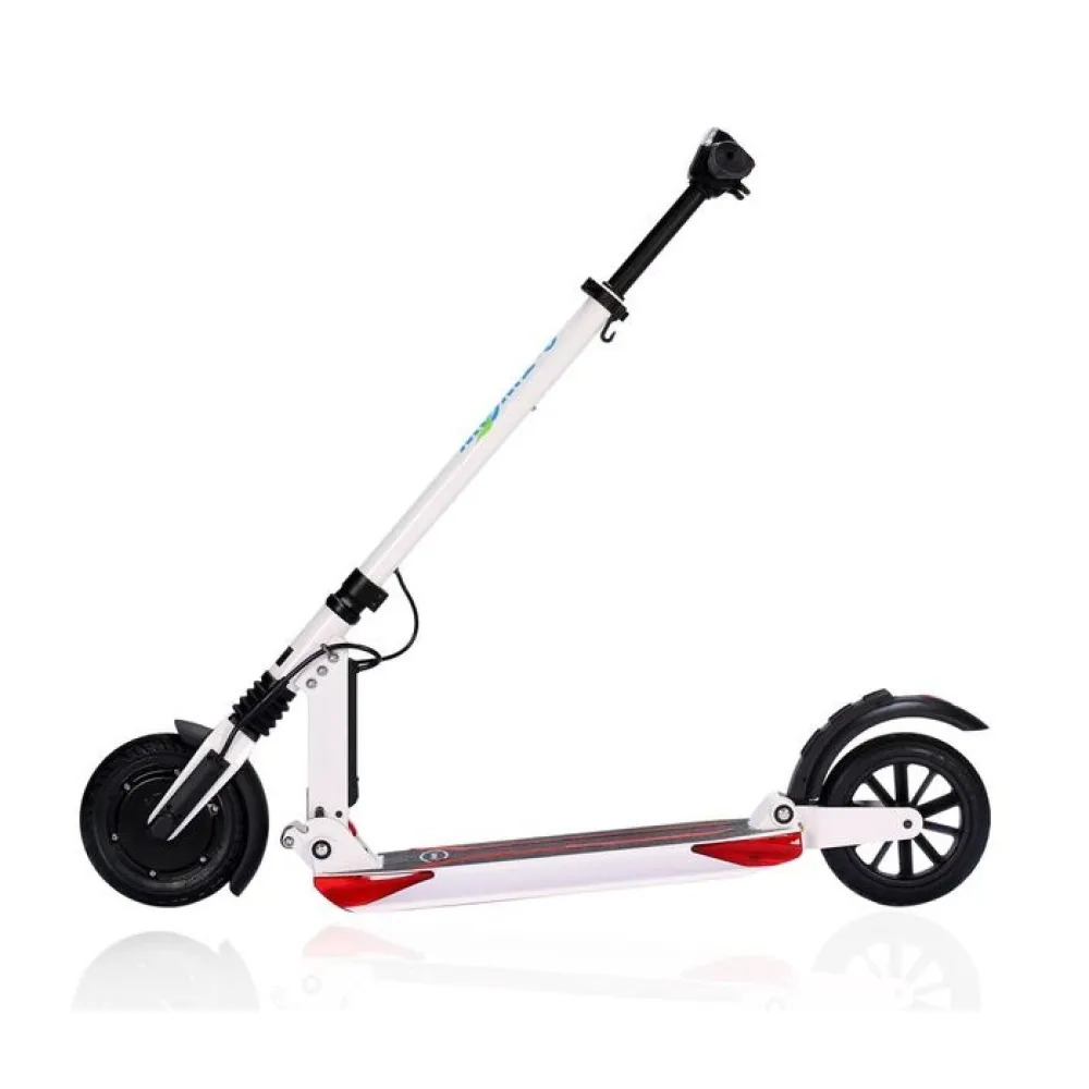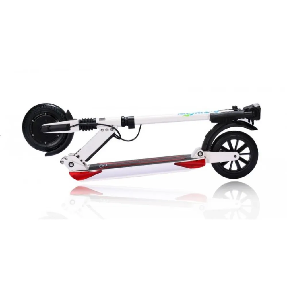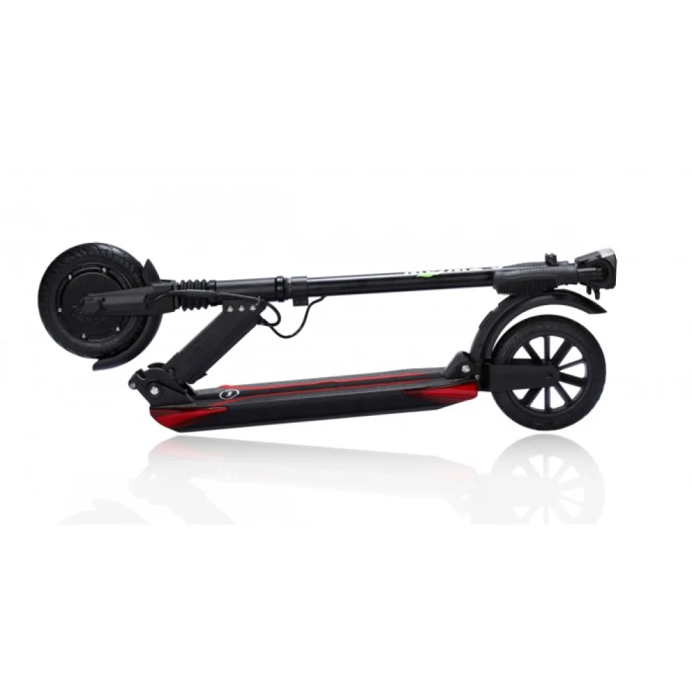 Мотор-колесо мощностью 500 Вт, максимальная скорость 33 км/ч это очень прилично для самоката такого уровня. Тормозная система на двух колесах помогает держать под контролем движение. Электросамокат спокойно вписывается в городской поток. Амортизация колес и диаметр колеса 8 дюймов способствует комфортному передвижению.