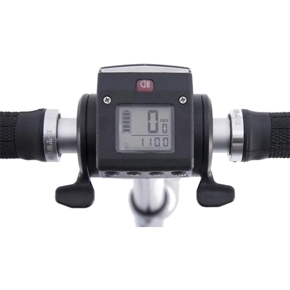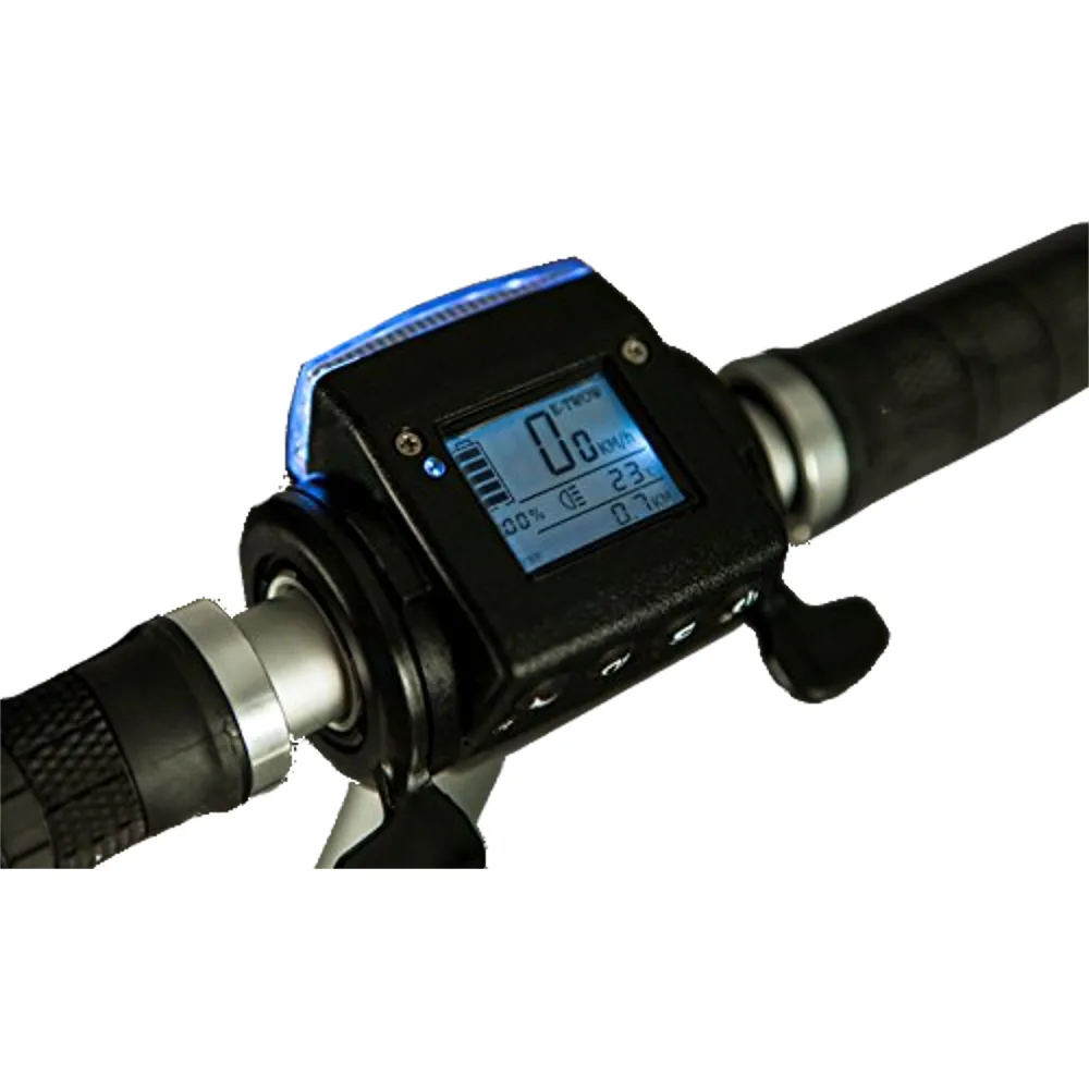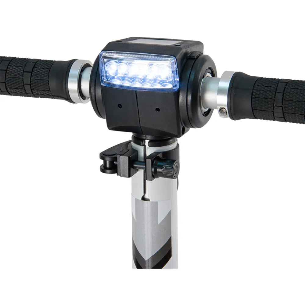 Емкость литий-полимерного аккумулятора 6.5 А/ч, заряд 2 ч в сети, на 35 км пути. Он вмонтирован в платформу, остается не заметным. На рулевой стойке светодиодная фара, ее мощности хватает для спокойного передвижения в темное время суток. Есть информативный дисплей на нем отслеживаются скорость, количество оставшегося заряда и другое. В сложенном состояние BOOSTER PLUS очень габаритный, его легко можно поместить в багажник машины и переносить в руках, его вес 11 кг.