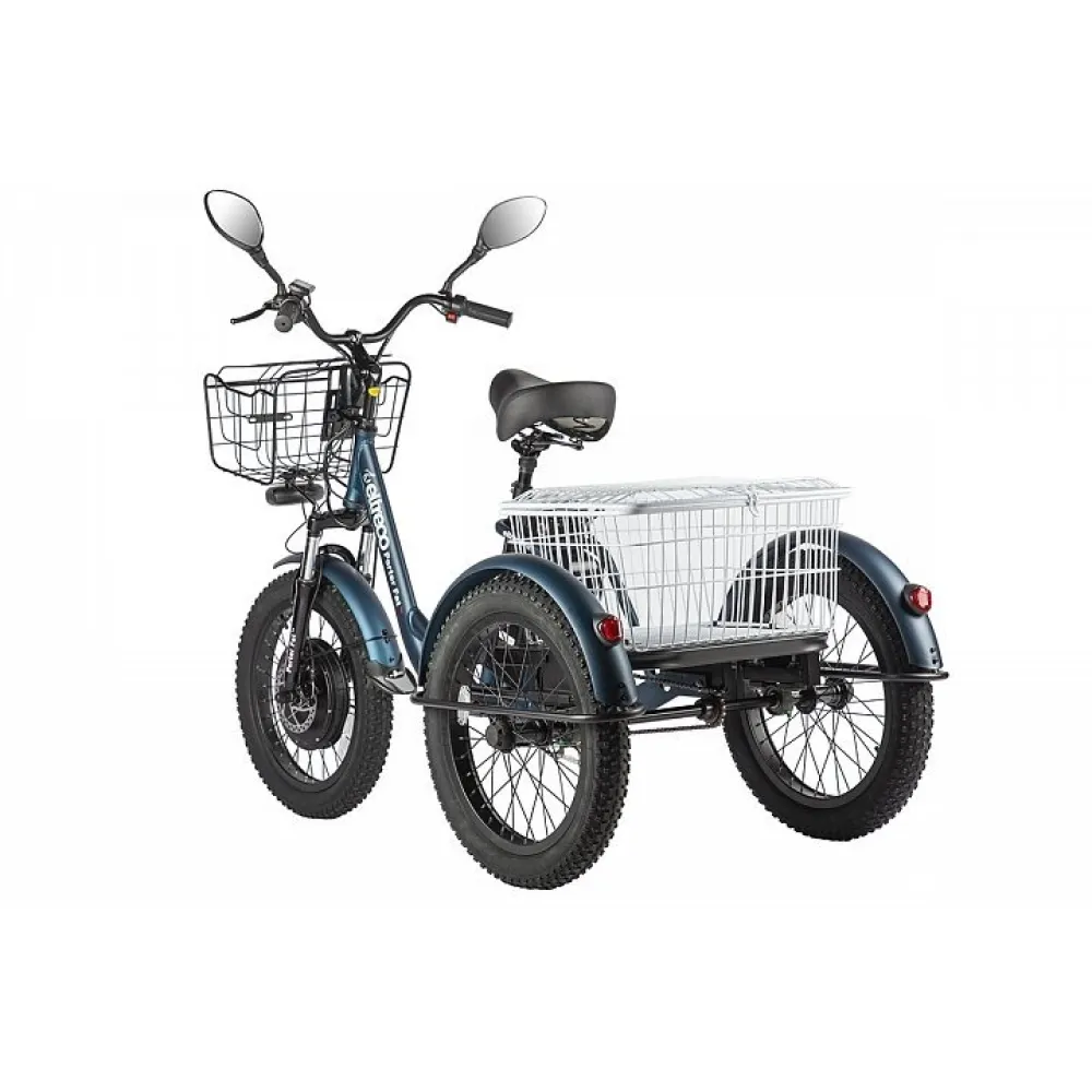 Трицикл Eltreco Porter Fat 500 Темно-синий – стал хитом сезона 2021. Мечты райдеров сбылись вместе с выходом новой модели. Трехколесный грузовой трицикл с мощным двигателем (500 Вт) станет помощником по дому. Объемная задняя корзина, немного меньшая передняя эффективны при транспортировке мелких бытовых предметов, работах на дачном участке, прогулок на свежем отдыхе с семьей и друзьями. Наличие электровелосипеда высвободит руки и время на выполнение работы.