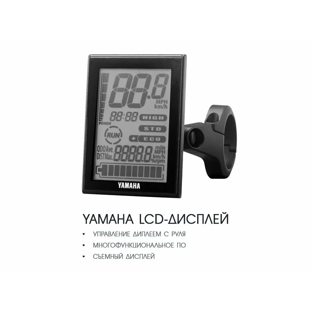 Многофункциональная информационная панель может устанавливаться в нескольких положениях, предоставляет данные о скоростном режиме, времени, пробеге, заряде батареи. Управляется дистанционным пультом, размещенным на передней части руля.