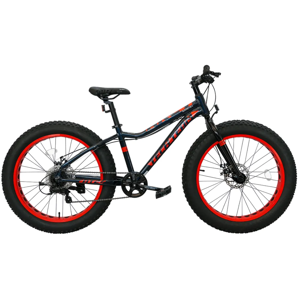 Конструкция рамы изготовлена из облегченного ударопрочного алюминия, легкого и надежного. Рулевая часть – удобная, предрасполагает к продолжительной комфортной езде. 24-дюймовые колеса с 4-дюймовыми покрышками – широкие, отлично сцепляются с разными видами грунта. Благодаря глубокому протектору байк без труда преодолевает глинистую и песчаную почву. Тормозная система с роторами 160 мм гарантирует своевременность остановки. Оснащенность модели промышленными подшипниками минимизирует обслуживание техники.
